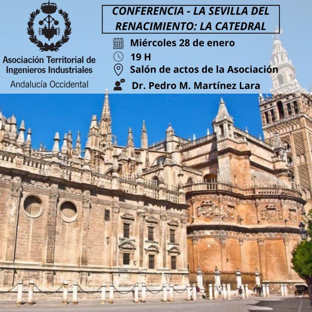 Desde la Asociación organizamos una nueva actividad cultural. Se trata de la Conferencia – Sevilla y el Renacimiento: La Catedral que tendrá lugar el próximo miércoles 28 de enero a las 19 h en el salón de actos ubicado en la sede de la Asociación (C/Dr. Antonio Cortés Lladó, 6, Sevilla).